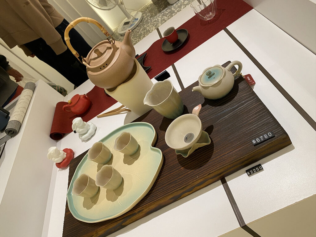 見つけた瞬間から、店内にずらりと並ぶ茶器に目を奪われます。どれも素敵で、正直お値段はまあまあいたしますね。でも、この白い茶器セット……次は絶対買う。